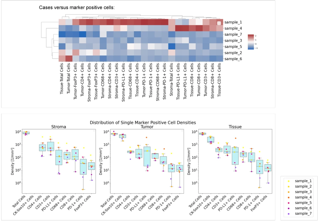 Quantify cell populations, co-expression, and proximity to reveal immune and tumor cell interactions.