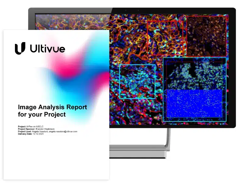 Analyze biomarkers within composite whole-slide mIF images at scale with UltiAnalyzer.AI™. Apply deep-learning models to generate cell-level quantitative data based on morphology and detected signal intensity for robust phenotyping.
